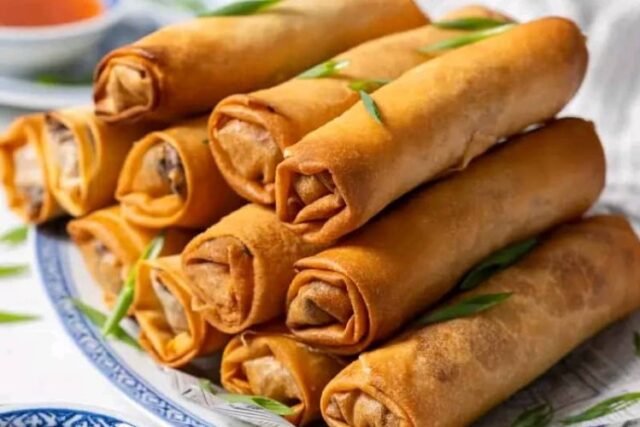 5. **Soya:** A soya spring roll din a cikin mai mai zafi har sai sun yi launin zinariya.